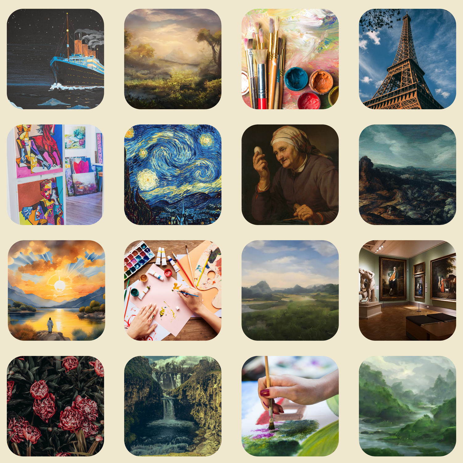 Browse a wide range of ready-made designs, from serene landscapes and vibrant animals to modern abstracts, cities, and mindful patterns.