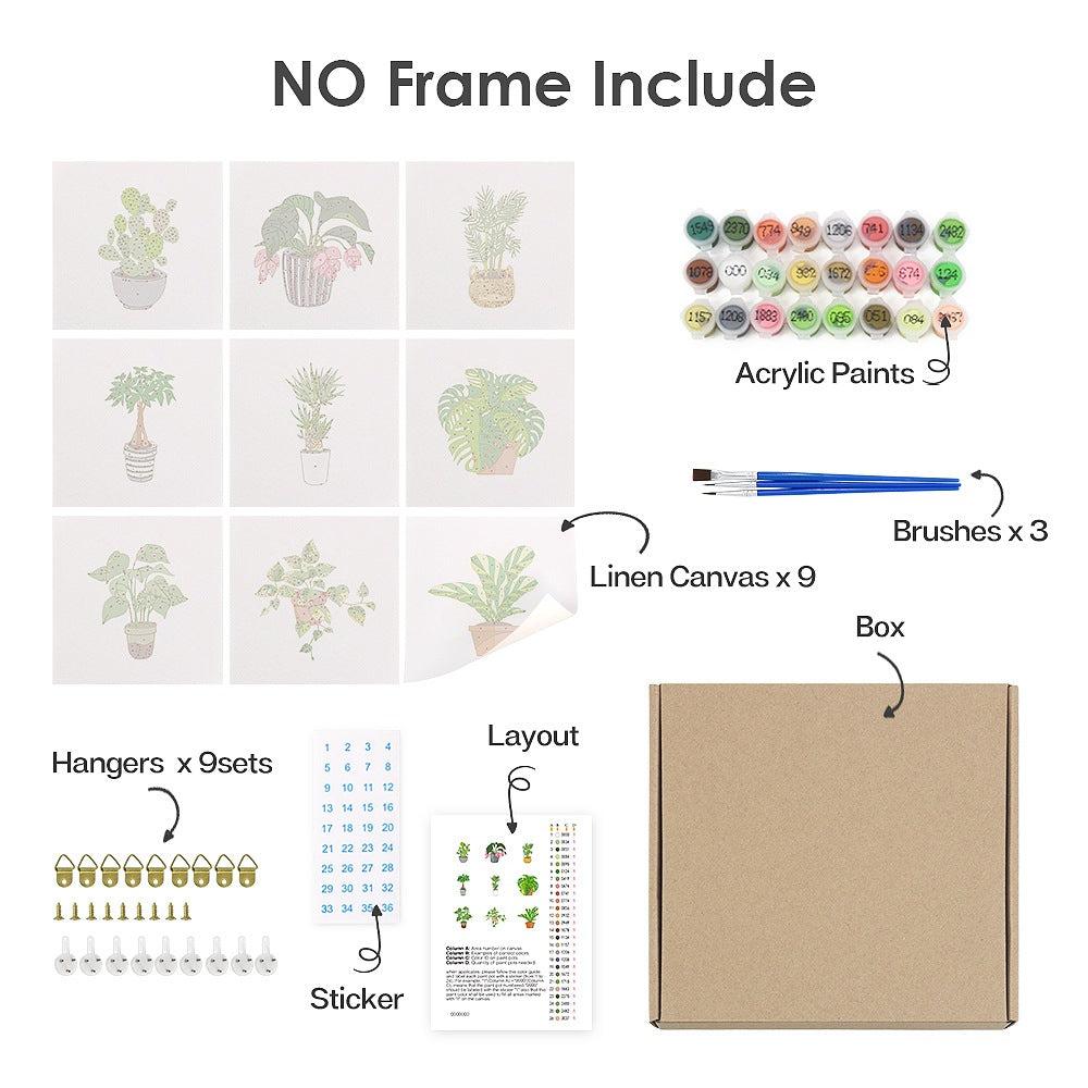 9 Mini Paintings – Indoor Plants Set | Paint by Numbers