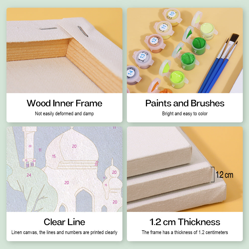 Without frame: this is a standard mini paint by number canvas that can not be hung immediately.