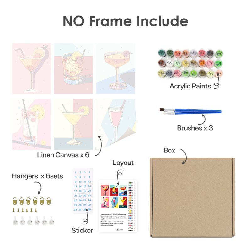 Without frame: this is a standard mini paint by number canvas that can not be hung immediately.