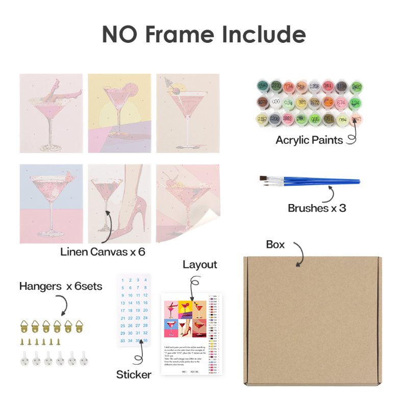 Move things forward with our 6 Mini Paintings - Fancy Cocktail Set! This beautiful set includes 6 vibrant mini paint-by-numbers, each depicting a different and classy cocktail.