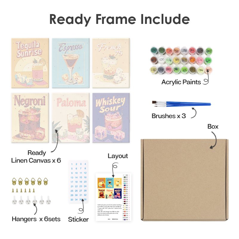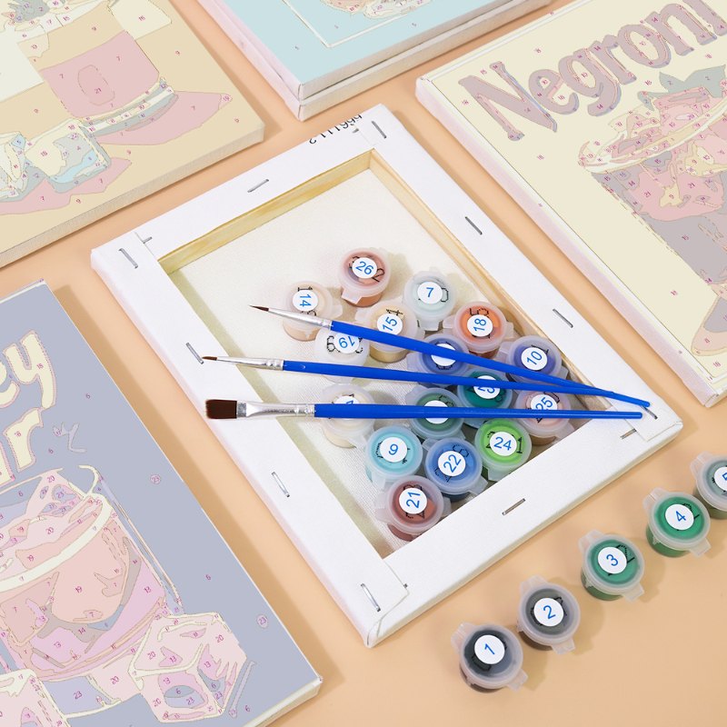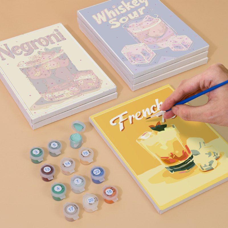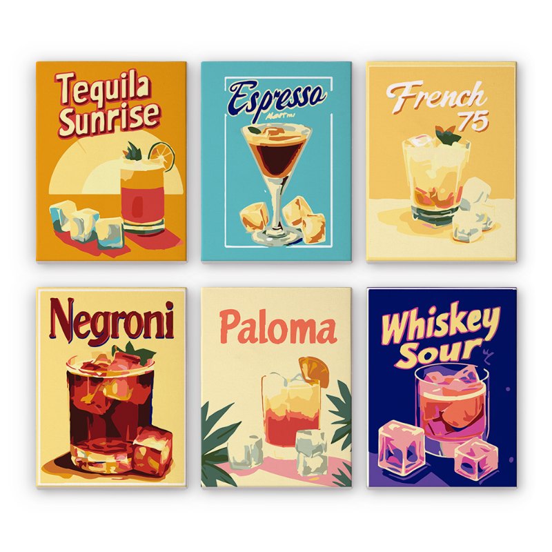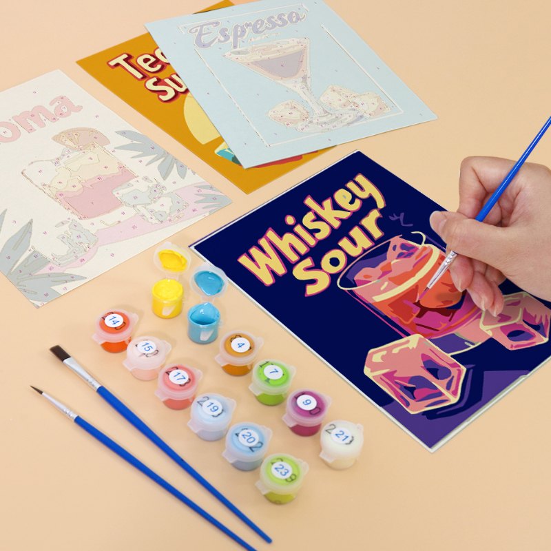 Unleash your imagination on a journey full of creativity and fun. Perfect for gifting or displaying as a collection. Our Cocktail Edition Mini Paint by Numbers set will surely bring joy and inspiration to any room. Transform your home into a lively bar with these sparkling cocktail designs.