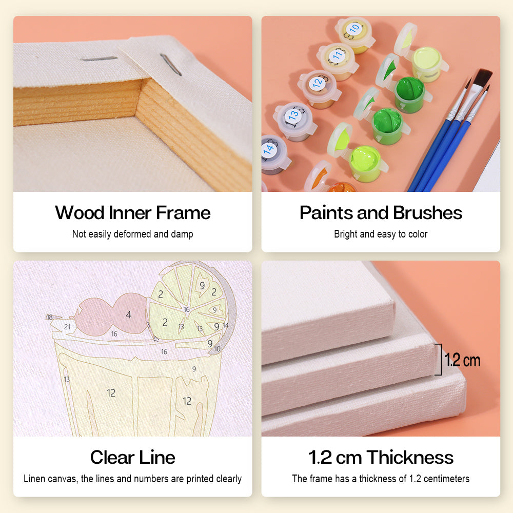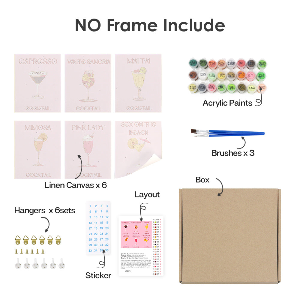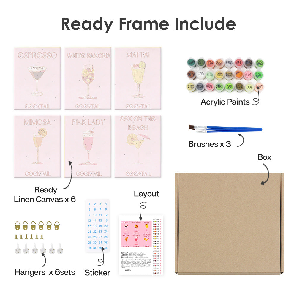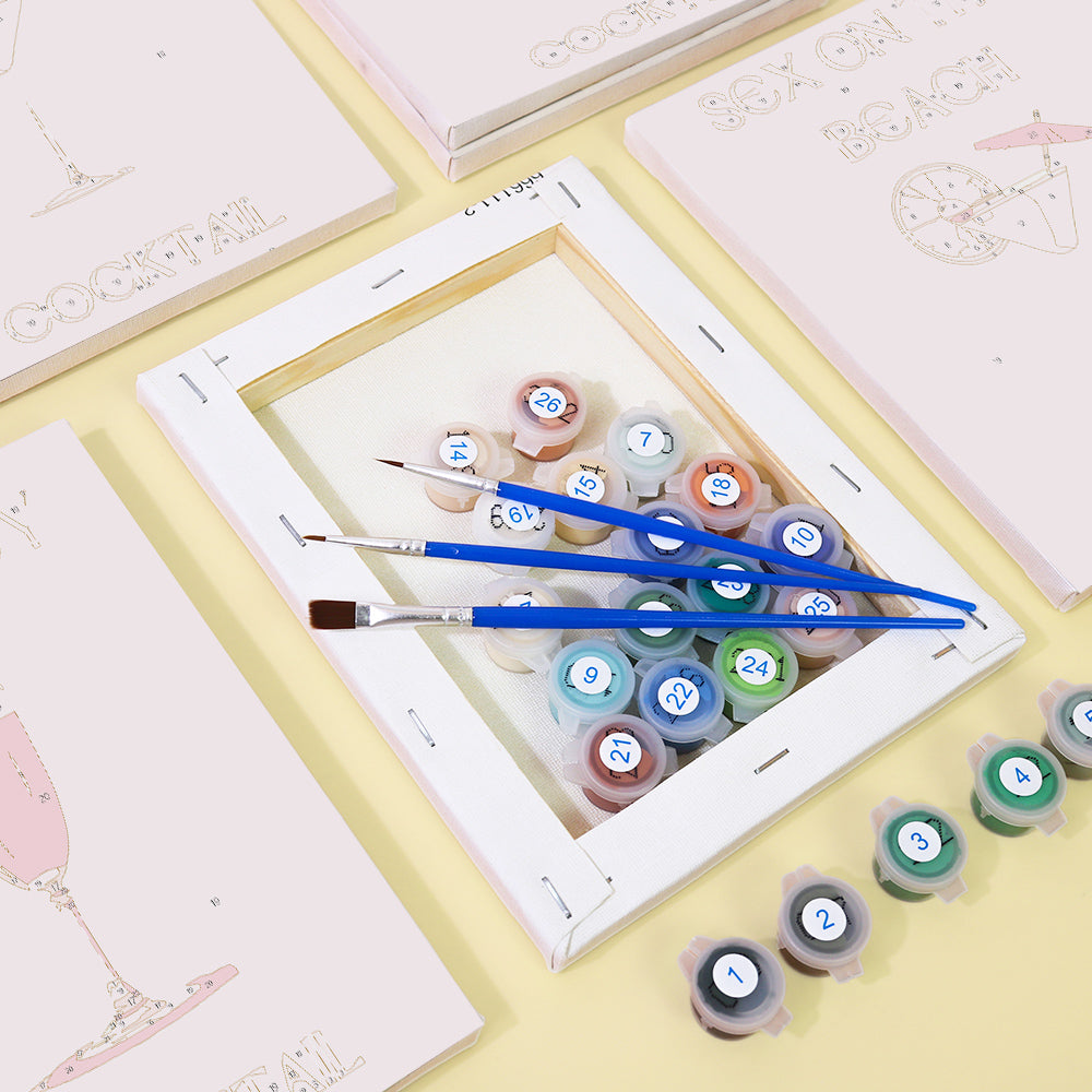 Unleash your imagination on a journey full of creativity and fun. Perfect for gifting or displaying as a collection. Our Cocktail Edition Mini Paint by Numbers set will surely bring joy and inspiration to any room. Transform your home into a lively bar with these sparkling cocktail designs.