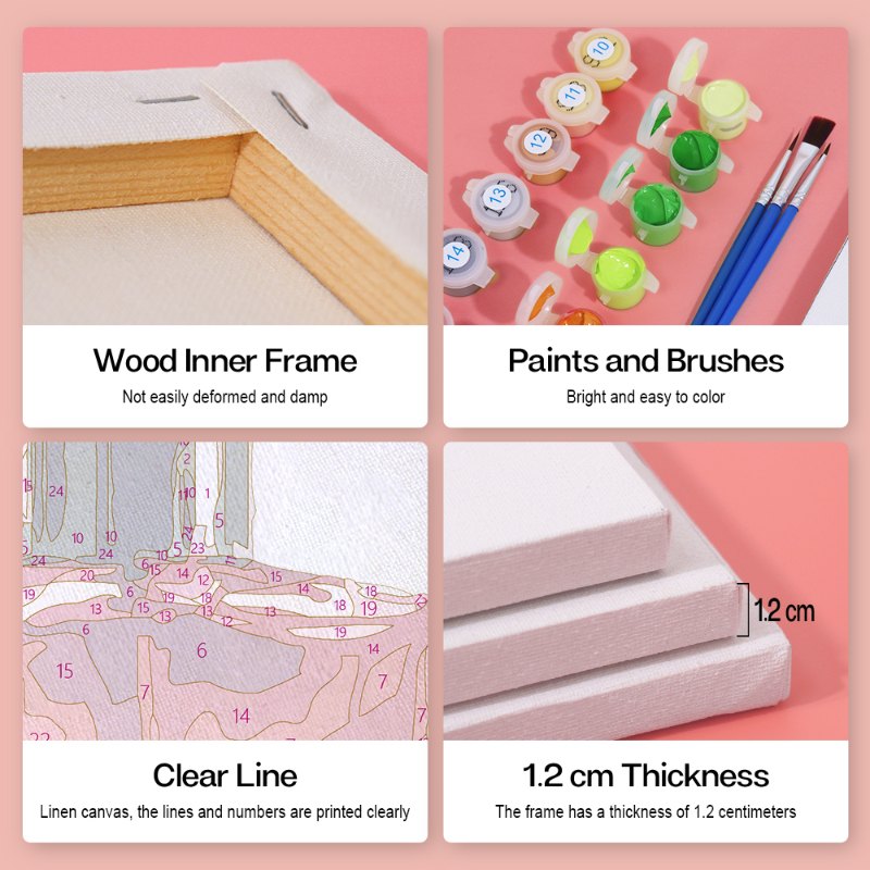 Mini paintings by numbers are brilliant works of art that you create yourself by coloring numbered cases with acrylic paint on a linen canvas. Our mini paintings kits are a perfect way to relax and create beautiful paintings.
